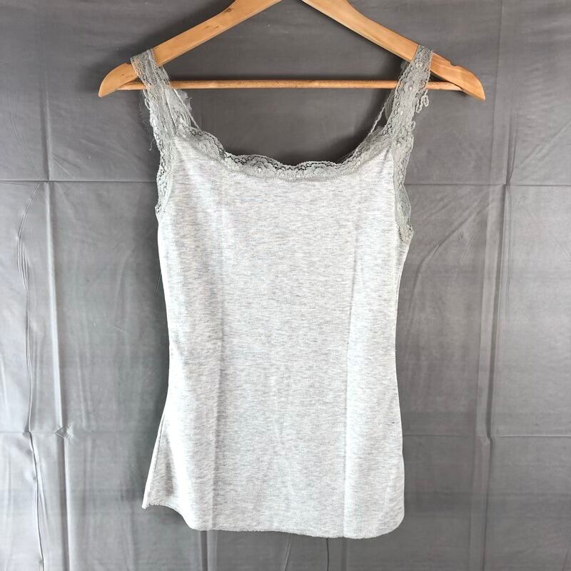ディサイズ DECIDES タンクトップ 花飾り レース 綿100% ライトグレー系 2025061800084