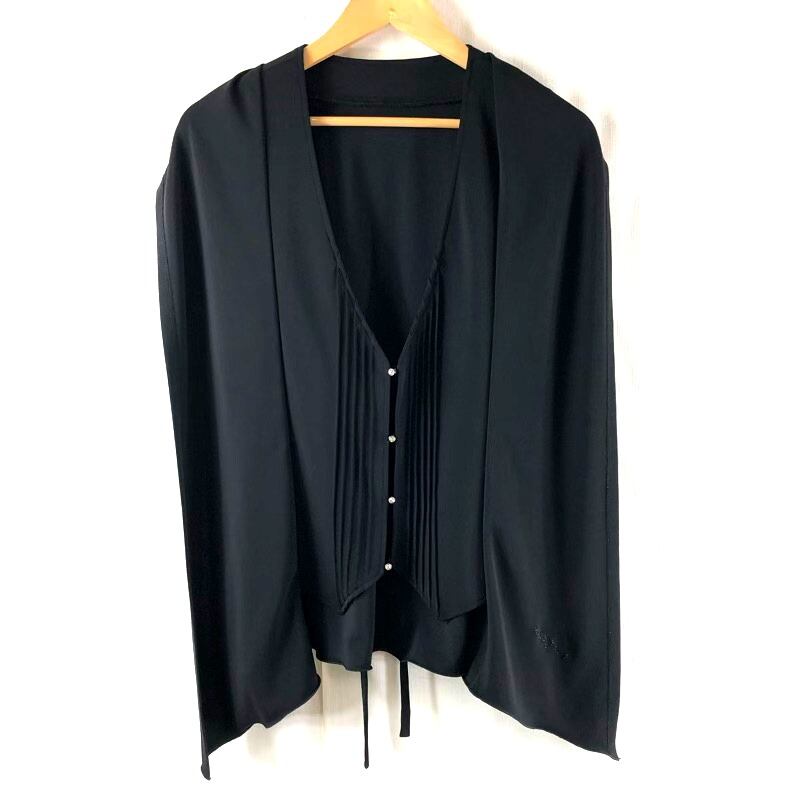 ダジュール Dagur ジレ ベスト ビジューボタン リボン付き 日本製 ブラック LLサイズ 2025062400054