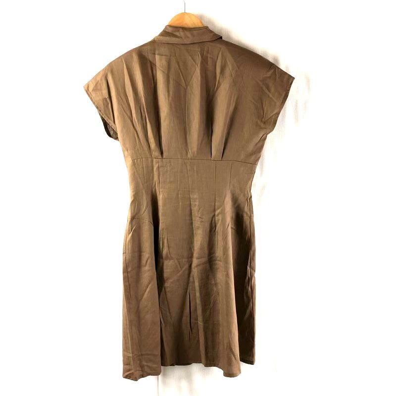 レナウンルック partout ワンピース ノースリーブ 肩パット ボタン 綿麻混 ブラウン 2025062600102
