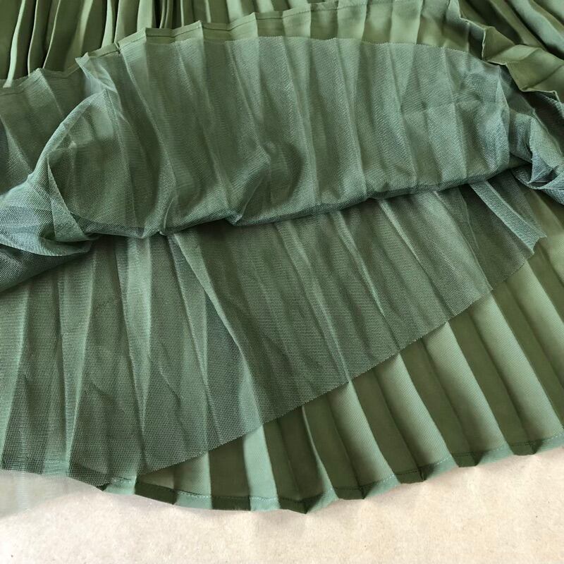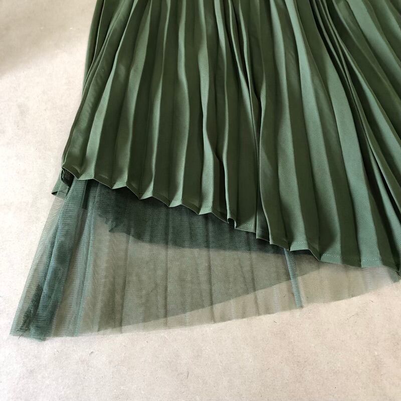 シーモシェリー she mo shelly スカート プリーツ チュール アシンメトリー カーキ 2025062700024
