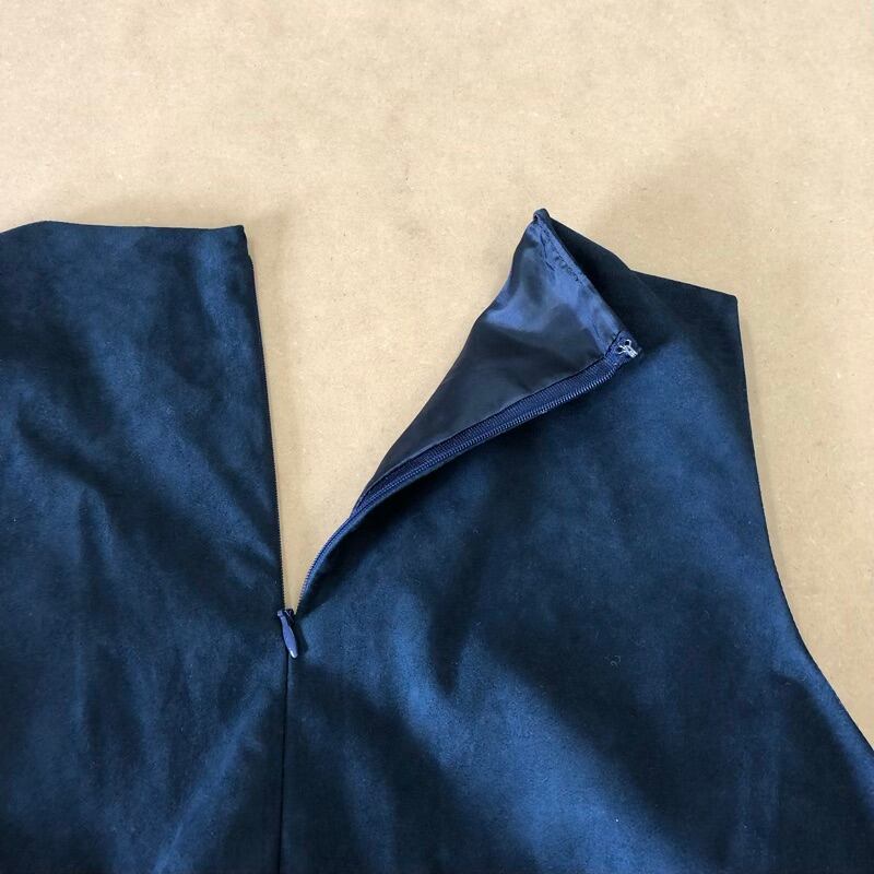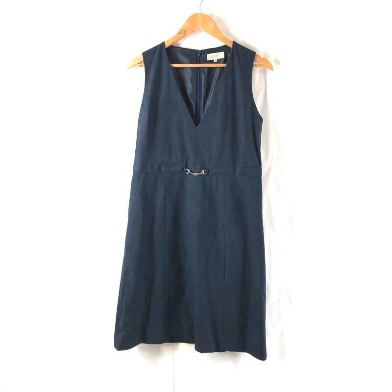 キタムラ Kitamura ワンピース ノースリーブ Vネック スエード チャーム付き 裏地付き 日本製 ネイビー 40サイズ 2025062700178