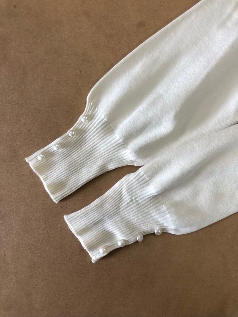 アオキ レミュー AOKI LES MUES ニット タグ付き ボートネック パールボタン オフホワイト 白 Mサイズ 2025062800113