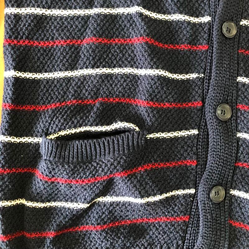 ジーユー GU カーディガン ボーダー Vネック コットン100% トリコロール ネイビー系 Mサイズ 2025062800137
