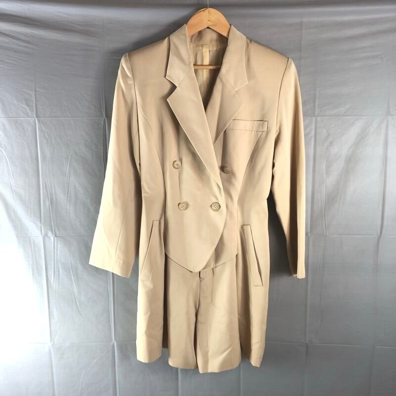 マリココウガ Mariko Kohga コート パンツ仕様 ハーフパンツ ダブルボタン ベルト ポケット 肩パッド 日本製 ベージュ 2025063000024