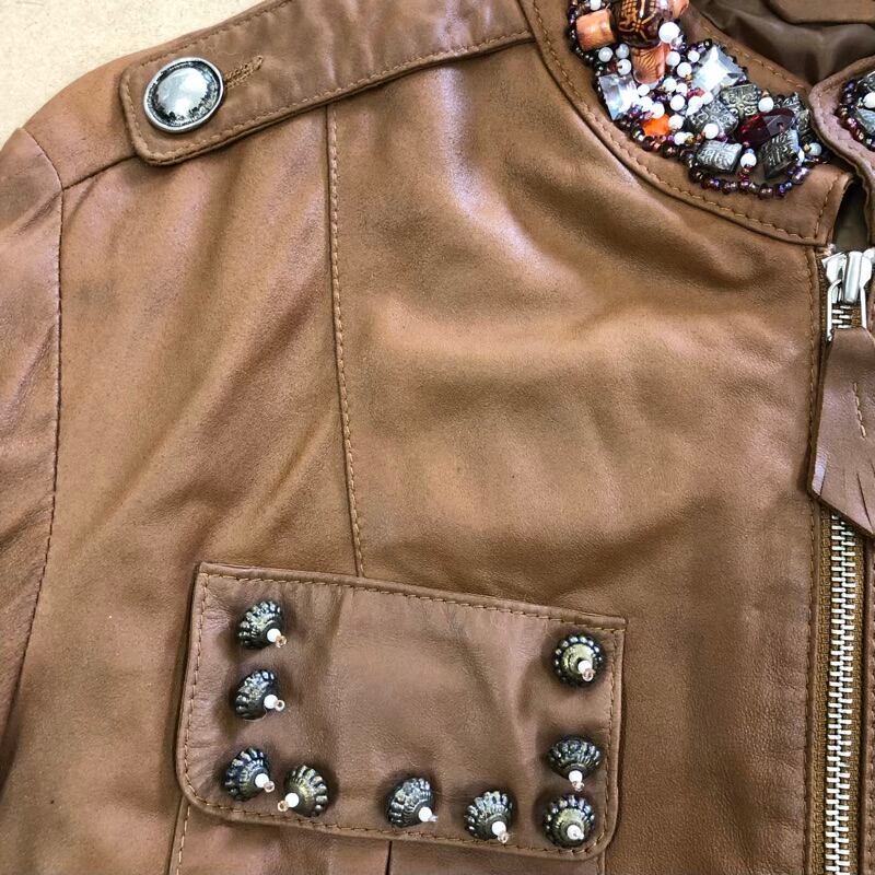 YSACK by Piero Ferragina ジャケット ライダースジャケット ショート丈 イタリア製 ビジュー装飾 ダブルファスナー ブラウン 2025070200073