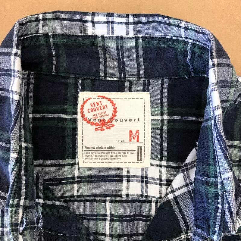 ヴァンクヴェール VENT COUVERT シャツ 長袖 チェック コットン100% グリーン系 ネイビー系 Mサイズ 2025070200141