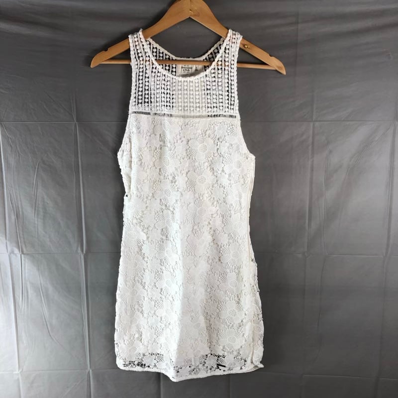 アバクロンビーアンドフィッチ Abercrombie&Fitch ワンピース ノースリーブ 刺繍 レース サイドファスナー 花 白 0サイズ 2025070300308