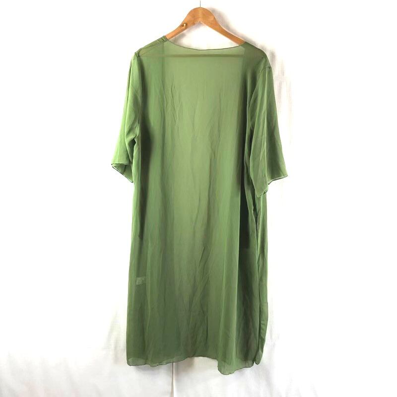 カーディガン ロング 半袖 薄手 シアー ラップカーディガン ポケット スリット 緑 カーキ XLサイズ 2025071100037