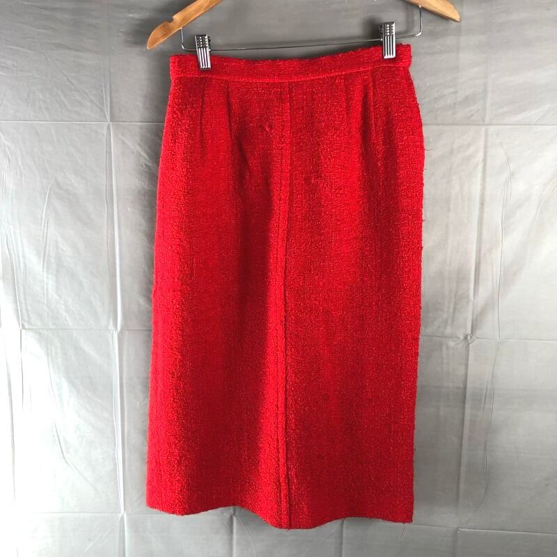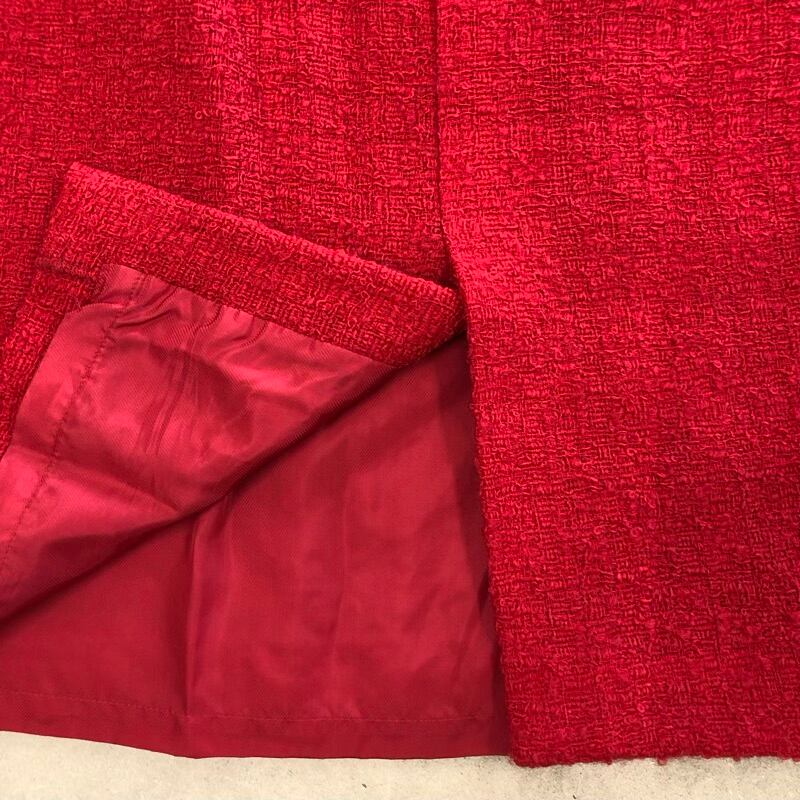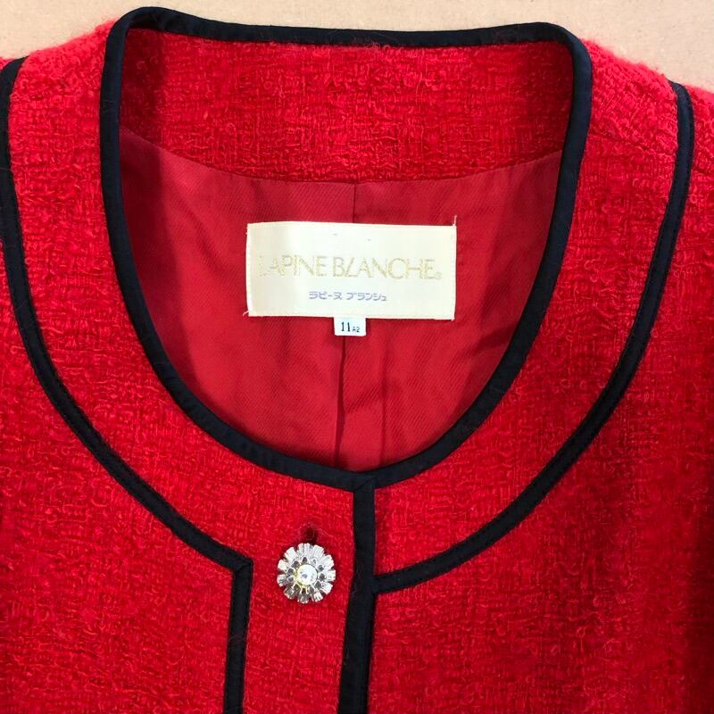 ラピーヌブランシュ LAPINE BLANCHE セットアップ スカートスーツ パイピングデザイン ビジューボタン レトロ レッド系 赤 11A2サイズ 2025071200027