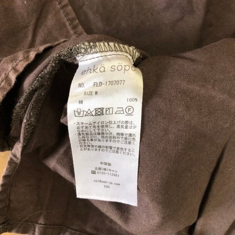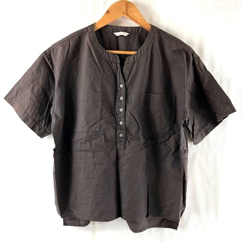 エヘカソポ ehko sopo ブラウス 半袖 キーネック コットン100% サイドスリット ブラウン 茶 Mサイズ 2025071200119