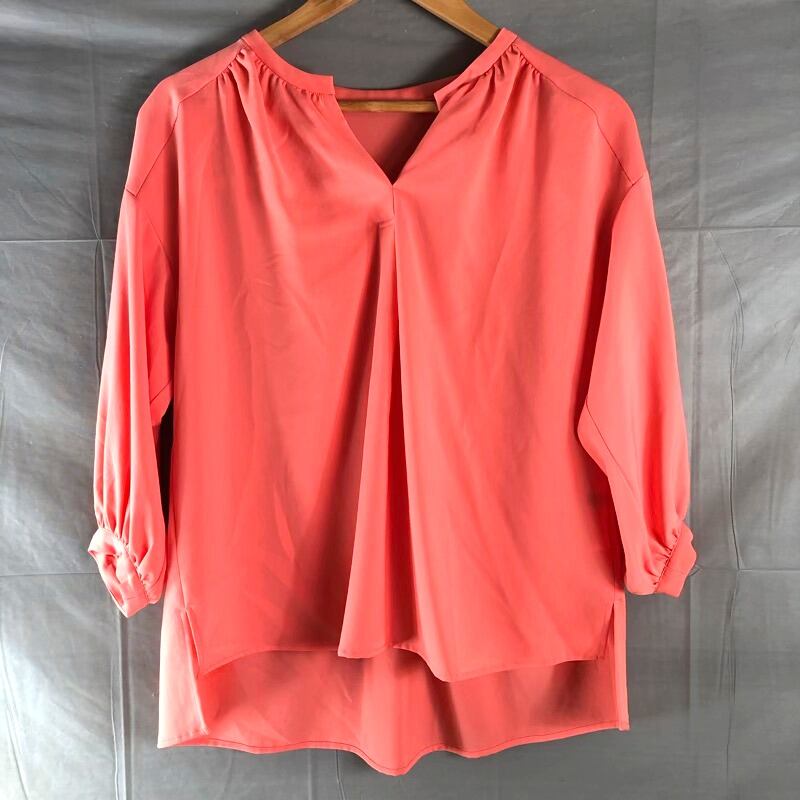 スマートピンク smart pink ブラウス スキッパー キーネック とろみ素材 サイドスリット サーモンピンク ピンク系 オレンジ系 40サイズ 2025071200157