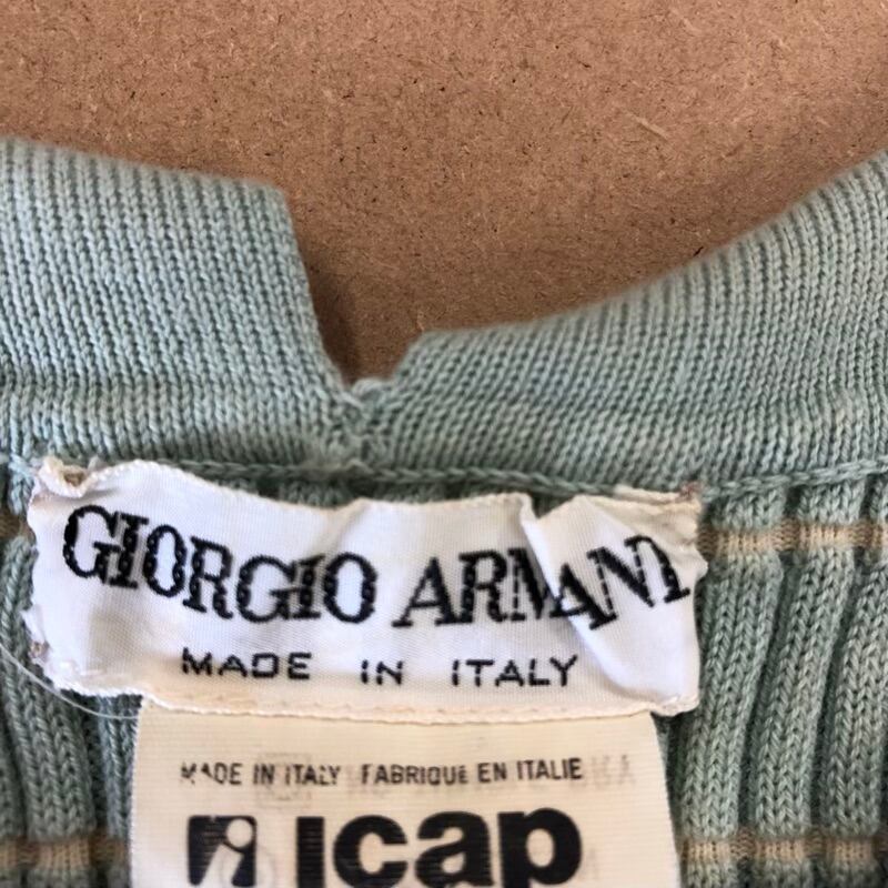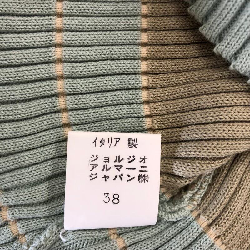 ジョルジオアルマーニ Giorgio Armani カットソー 半袖 ニット リブ デザイン襟 ストライプ 綿 イタリア製 ミントグリーン系 38サイズ 2025071600087
