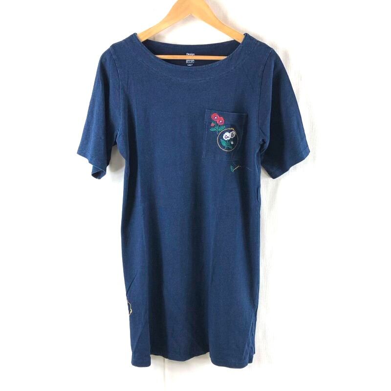 Design Tshirts Store graniph グラニフ ワンピース 半袖 花 刺繍 ポケット 綿100% ブルー系 FREEサイズ 2025071600124