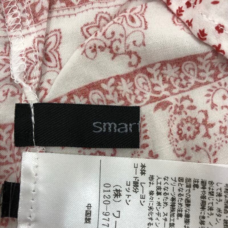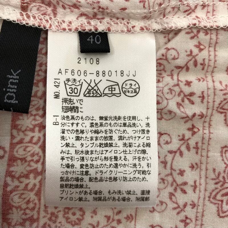 スマートピンク smart pink カットソー 七分袖 リボン タッセル アラベスク柄 ボタン袖 白 赤系 40サイズ 2025071600162