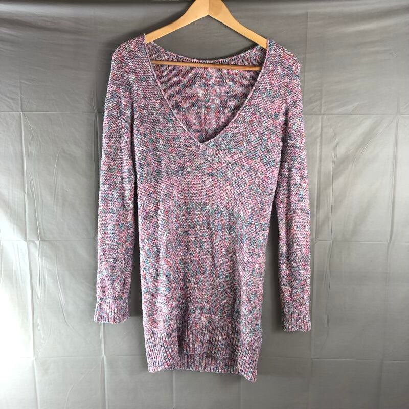 ルスークホリデー LESOUKHOLIDAY ワンピース チュニック ニット ミックス生地 Vネック リブ 綿 ピンク 薄紫系 38サイズ 2025071600339
