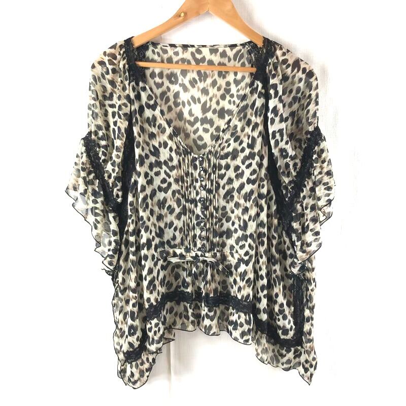 ヴィニー Vigny カットソー レース 半袖 ヒョウ柄 ボタン 薄手 シースルー生地 黒 ブラウン Fサイズ 2025071700213