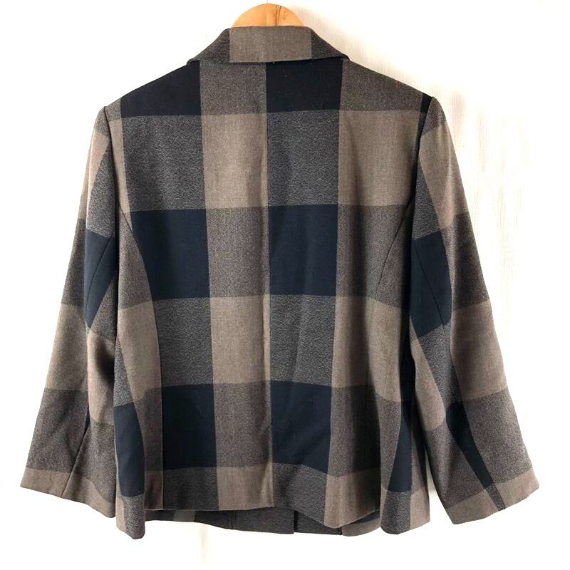 ダイナフロー Dinah Flo ジャケット ブロックチェック 裏地付き ウール100% ブラウン系 ブラック系 Fサイズ 2025071800081