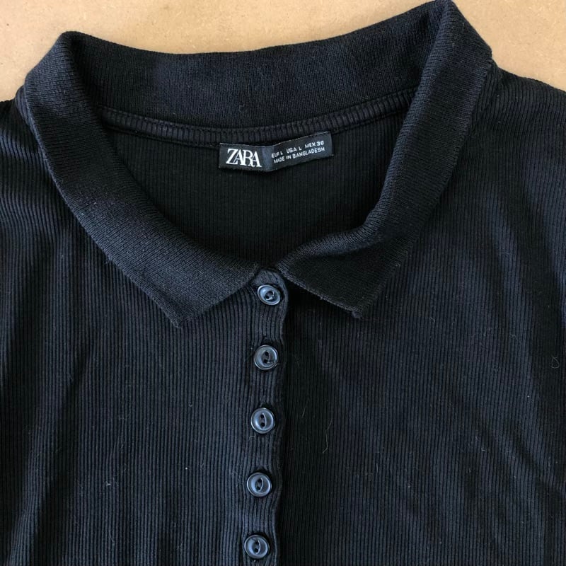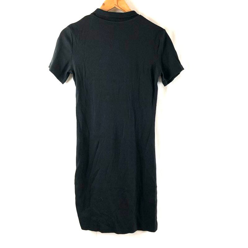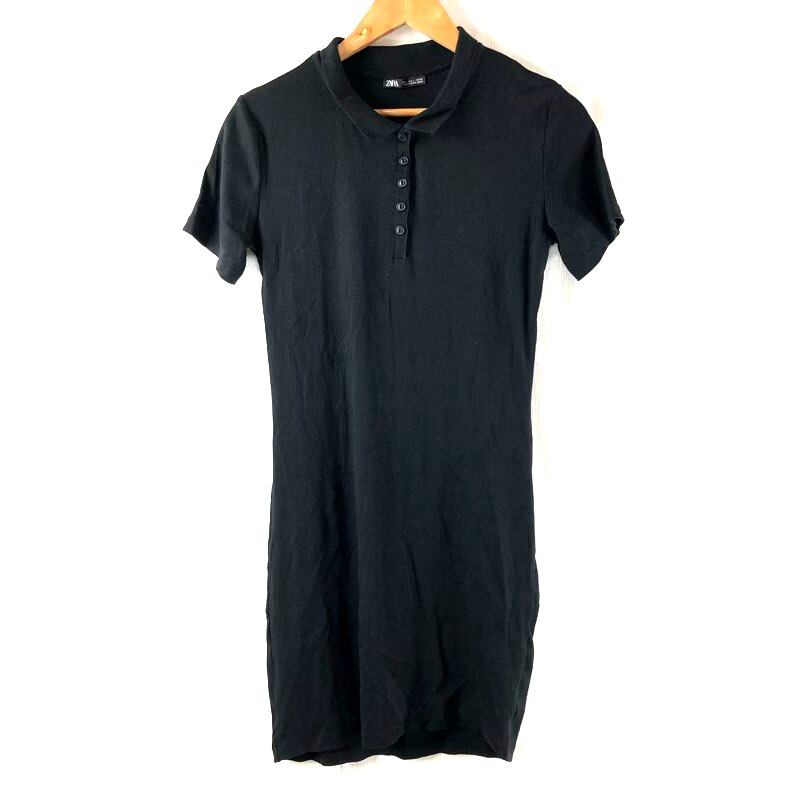 ザラ ZARA ワンピース ポロシャツワンピ 半袖 膝丈 タイト リブ ストレッチ ブラック 30サイズ 2025071800128