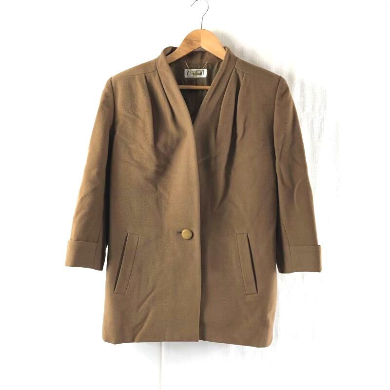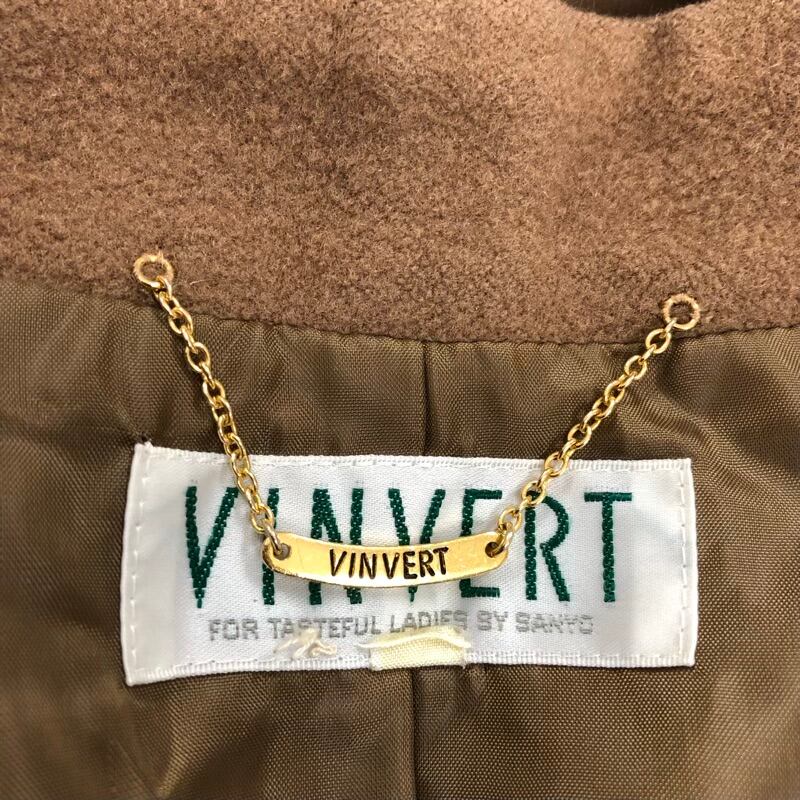 バンベール VINVERT コート ウール100% カシミヤ ボタン ポケット チャーム付き 飾りベルト 肩パッド ブラウン キャメル系 7ABサイズ 2025071900040