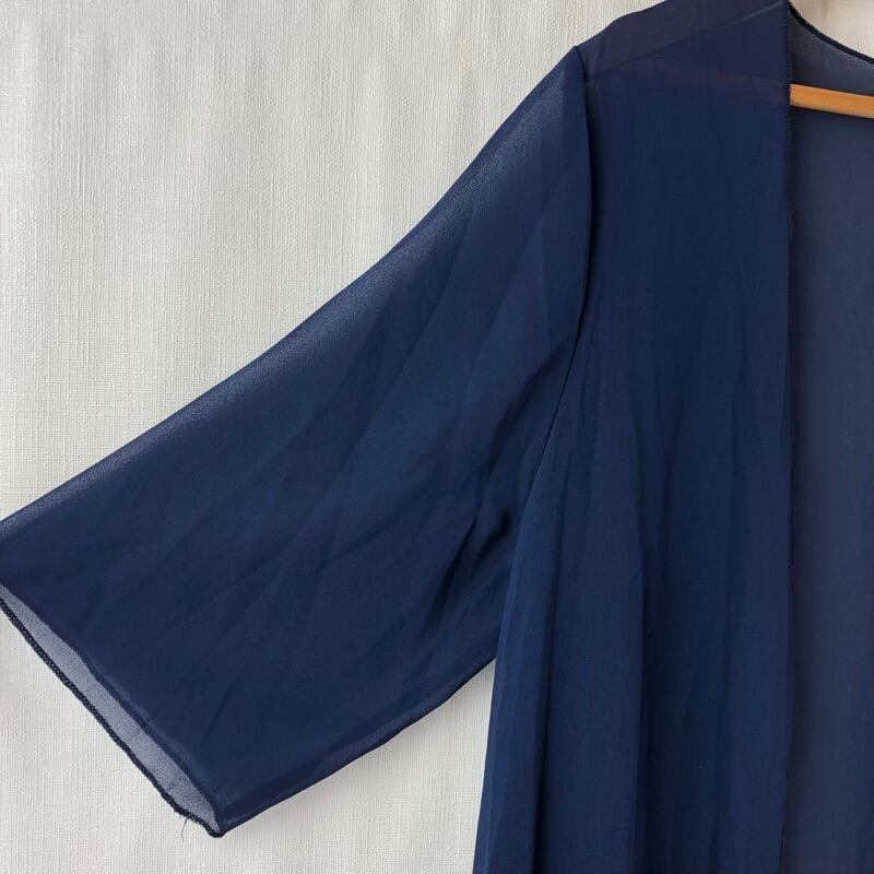 カーディガン ロング 薄手 半袖 シフォン シースルー 無地 スリット裾 ネイビー Lサイズ 2025071900194