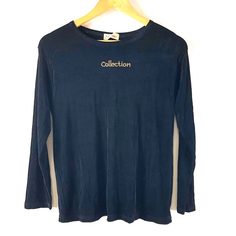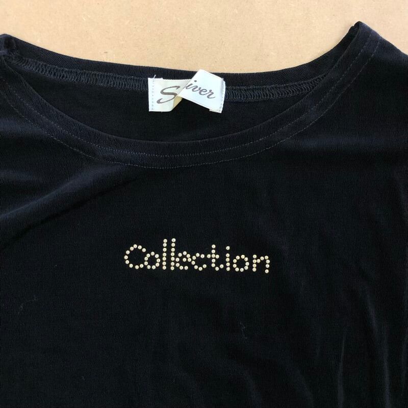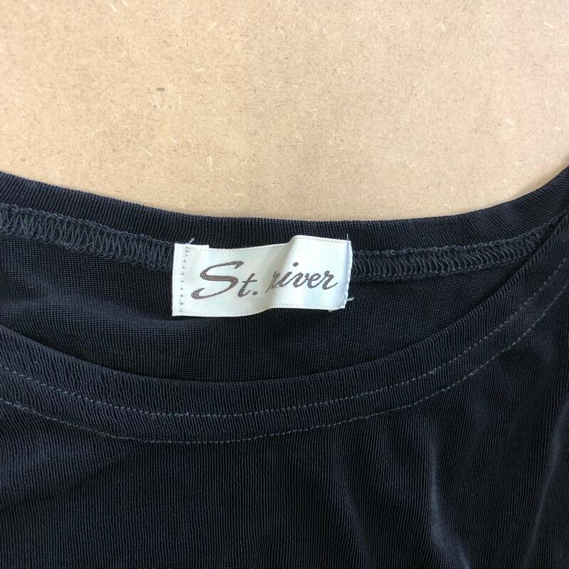 セントリバー St.river カットソー 長袖 ラインストーン 英字ロゴ ストレッチ 薄手 ブラック 2025072000091