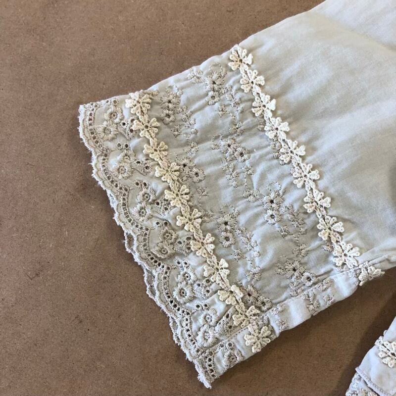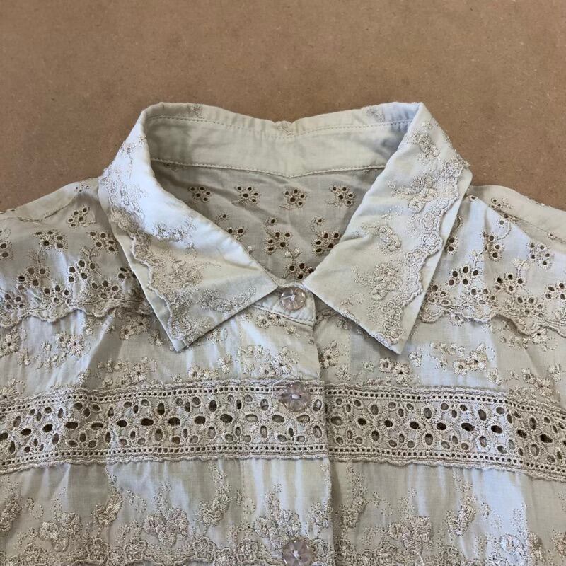 vanity ブラウス シャツ 花刺繍 襟刺繍 七分袖 綿100% ベージュ Mサイズ 2025072100074