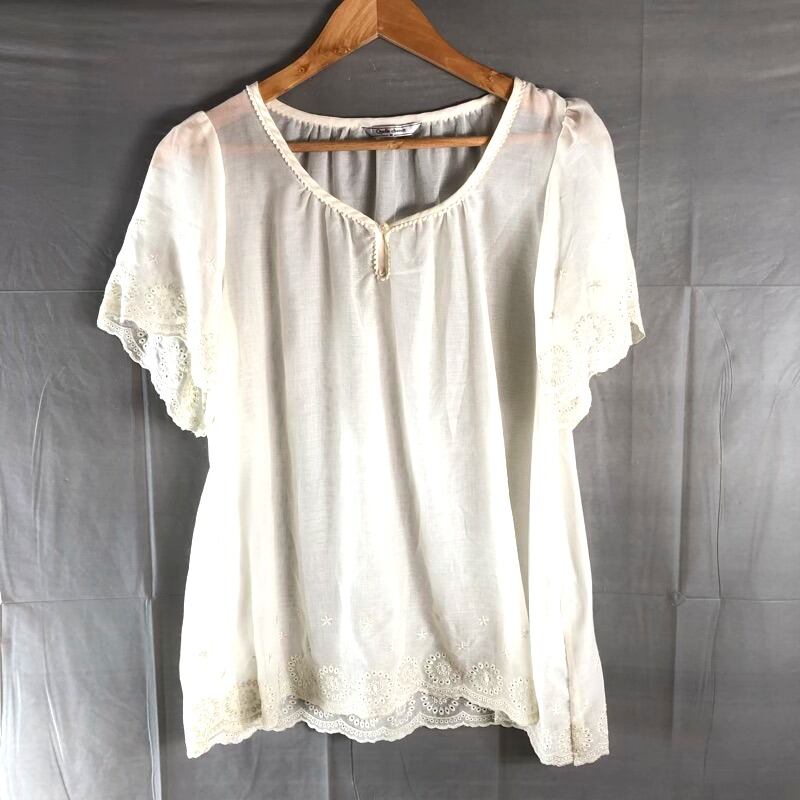 ケルシャンス Quelle Chance カットソー 半袖 刺繍 小花 レース シースルー生地 オフホワイト Mサイズ 2025072100241
