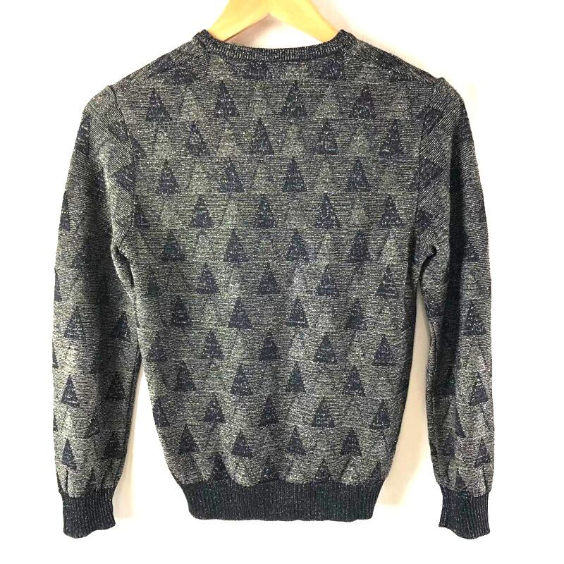 MARBEE カットソー ニット 長袖 ラメ入り トライアングル Vネック 日本製 黒 ゴールド Mサイズ 2025072200156