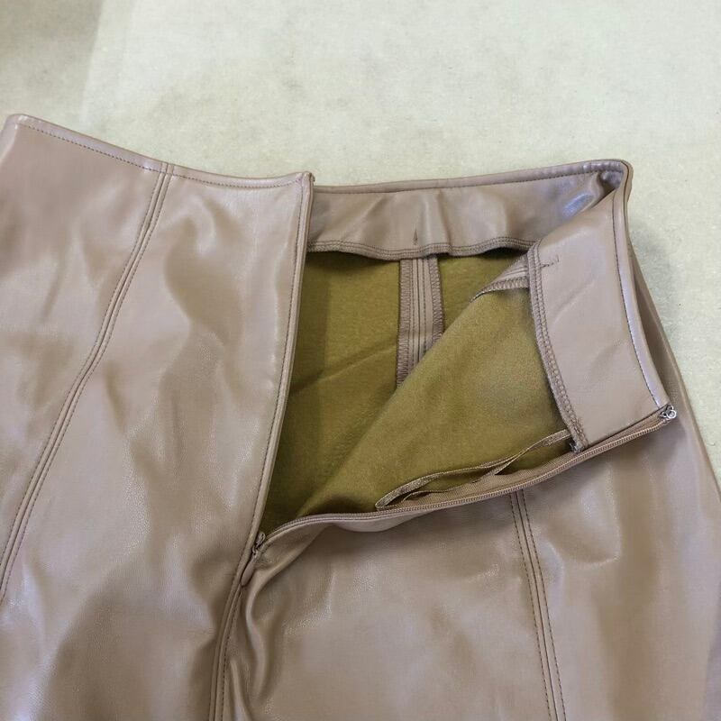 ジーユー GU スカート 合皮 ショート丈 ファスナー キャメル Lサイズ 2025072200170