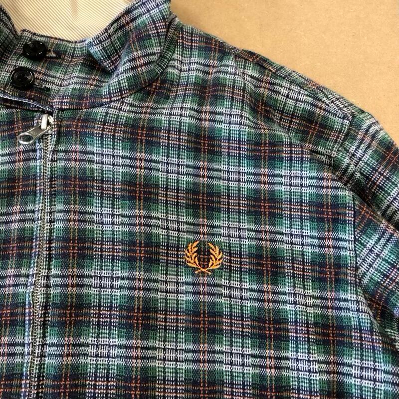 フレッドペリー Fred Perry ジャケット ジャンパー 上着 チェック 胸元ワンポイント 袖ゴム サイドファスナー 緑系 Mサイズ 2025072200330