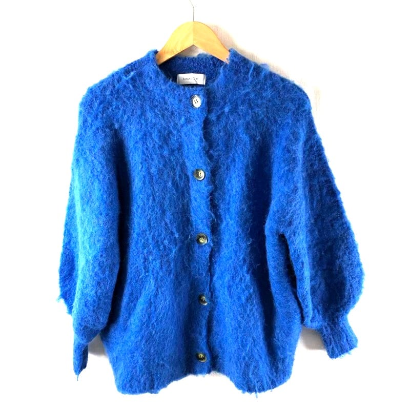 シンプリシテェ Simplicite カーディガン 長袖 もこもこ ボタン 長袖 サイドポケット 青 2025072200347