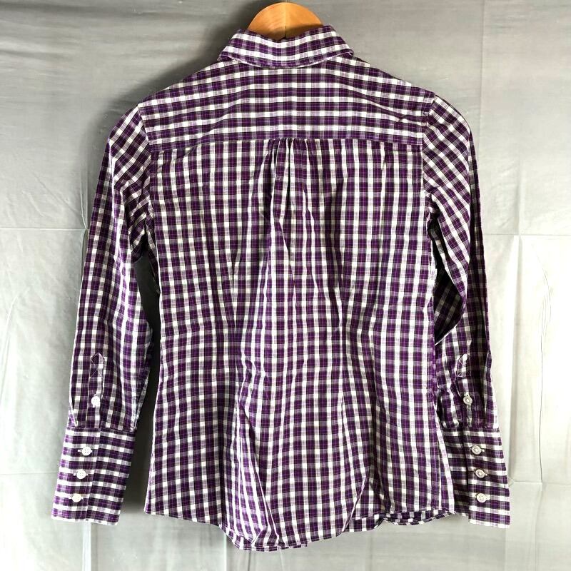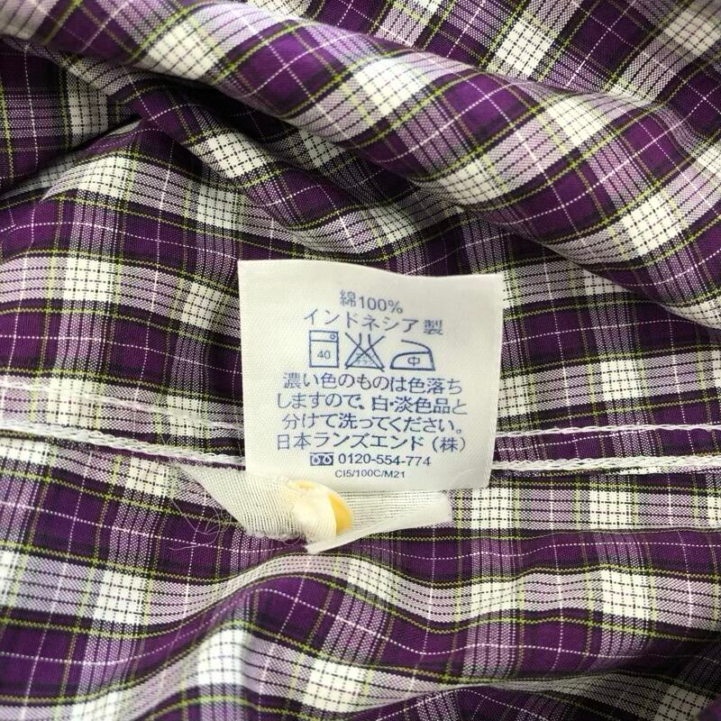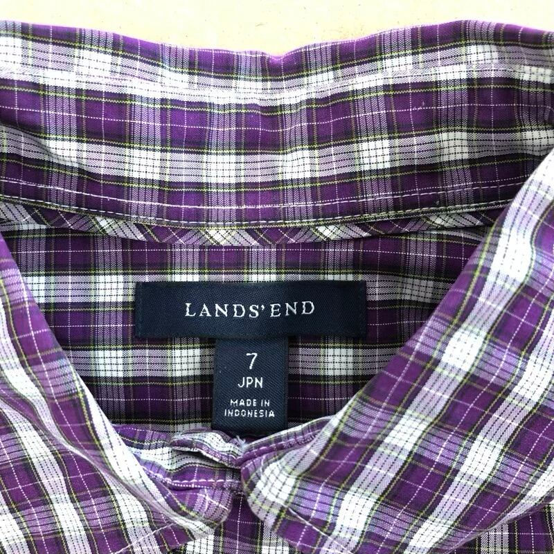 ランズエンド LANDS'END ブラウス シャツ フリル チェック 長袖 コットン100% パープル系 7サイズ 2025072300023