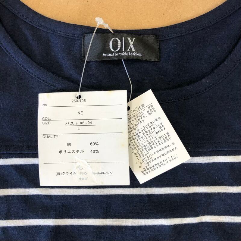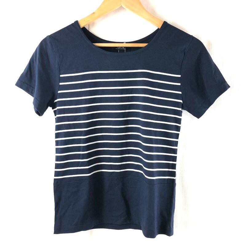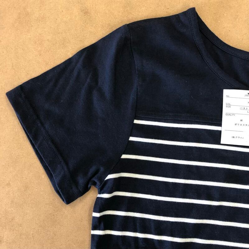 カットソー 半袖Tシャツ タグ付き ボーダー パネルボーダー ボートネック ネイビー 紺 Lサイズ 2025072400112