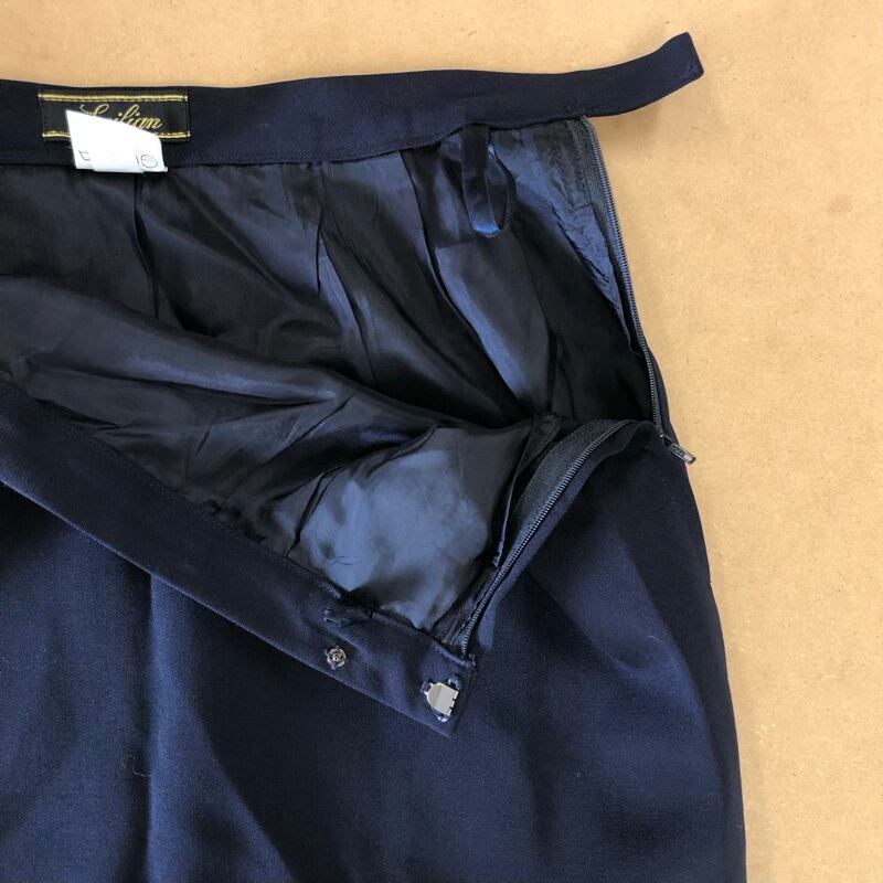 レリアン Leilian スカート ミモレ丈 毛100% 日本製 サイドファスナー 裏地付き シンプル ネイビー 11サイズ 2025072400198