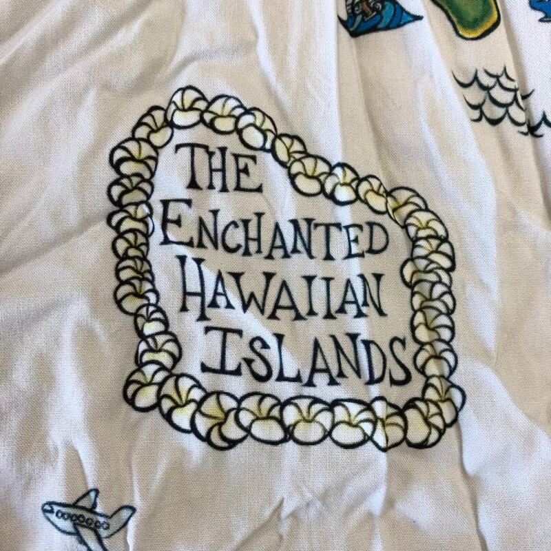 ユニクロ UNIQLO H BROWN シャツ キッズ 半袖 ハワイアン 島 英字 柄 ボタン ネームタグ付き 緑 白 ベージュ系 150サイズ 2025072500089