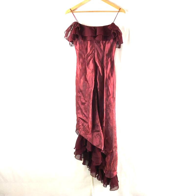 セクションーケイ section K ドレス ロング オフショルダー サテン フリル ラインストーン アシンメトリー カップ付き 赤 Mサイズ 2025072500171