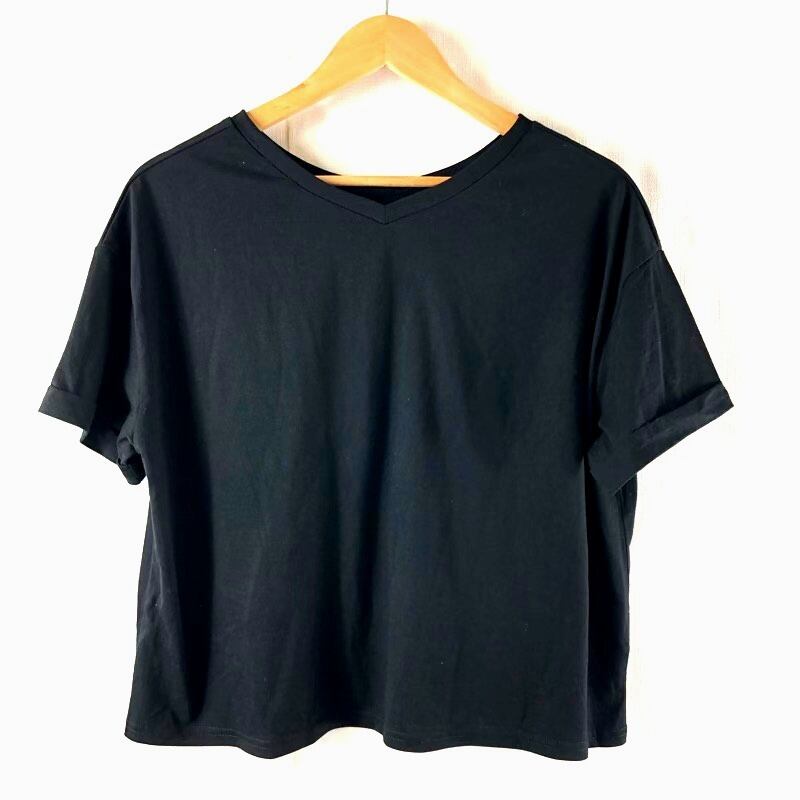 レトロガール RETRO GIRL Tシャツ カットソー 半袖 2wayネック Vネック ラウンドネック ブラック Mサイズ 2025072600055