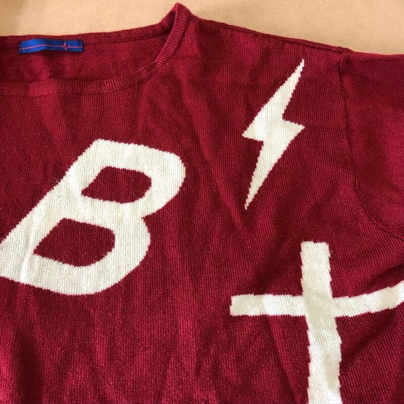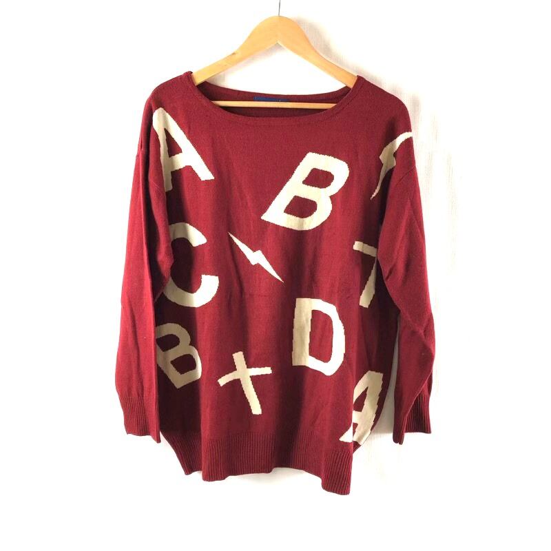 ニット 長袖 英字 イナズマ リブ ボルドー系 Mサイズ 2025072700052