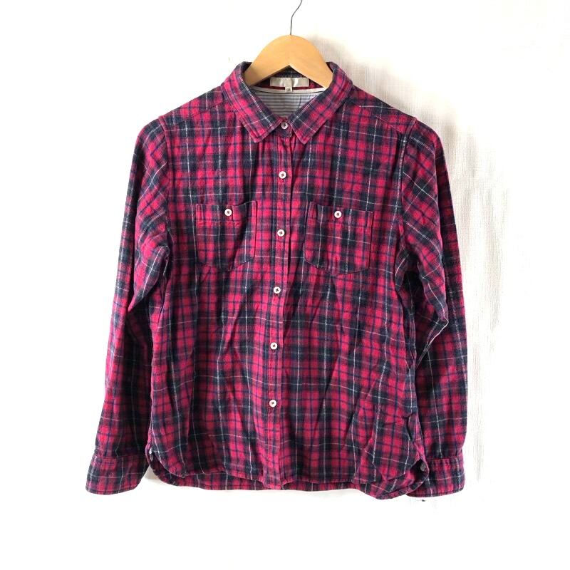 シャツ 長袖 チェック柄 綿100% ポケット ボタン 赤系 13Rサイズ 2025072700106