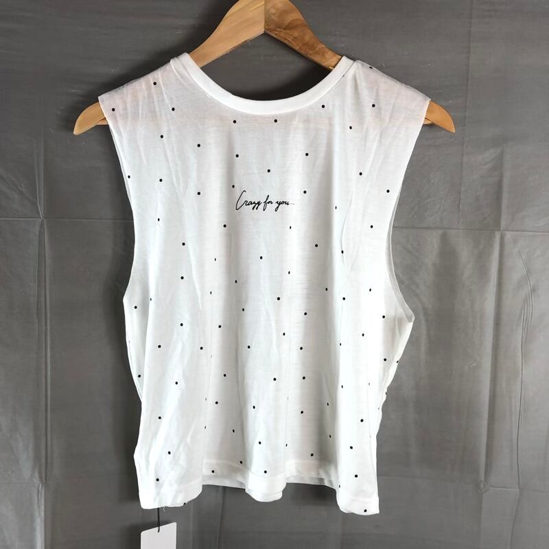スパイラルガール SPIRALGIRL カットソー 薄手 ノースリーブ ドット柄 英字 プリント タグ付き 白系 FREEサイズ 2025072700113