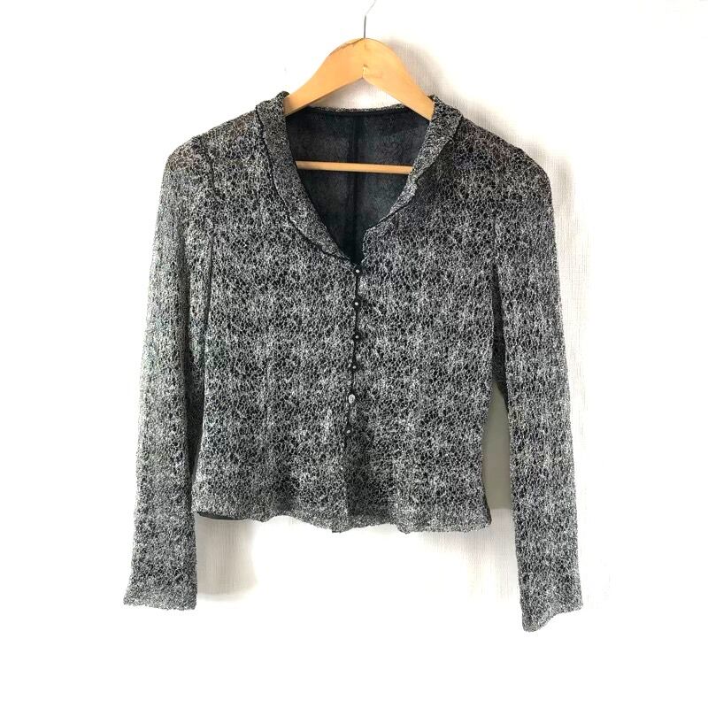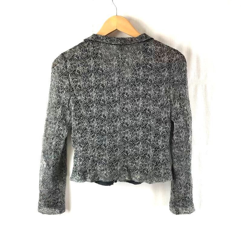 イギンジブリーヌ Igin Zibeline 東京イギン ジャケット 薄手 ラメ糸 シフォン 飾りボタン シルバー 黒系 5APサイズ 2025072700120