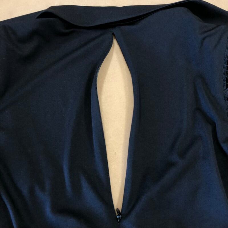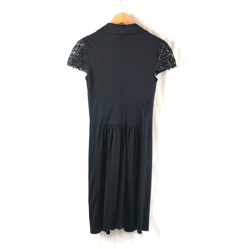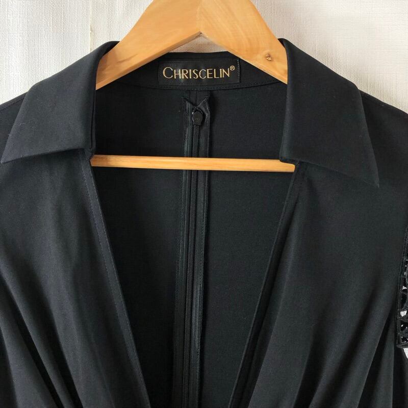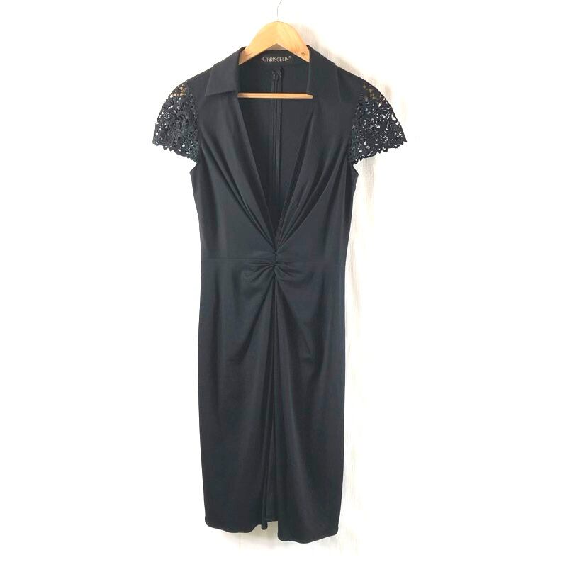 クリスセリーン CHRISCELIN ワンピース フレンチスリーブ レース 襟 Vネック キャザー 黒 40サイズ 2025072700144