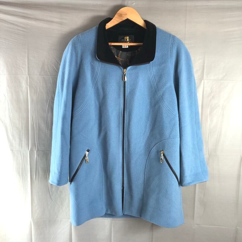 アミポイズン AMIPOISON コート ファスナー ハイネック ベロア ポケット 肩パッド 水色系 FREEサイズ 202507270168