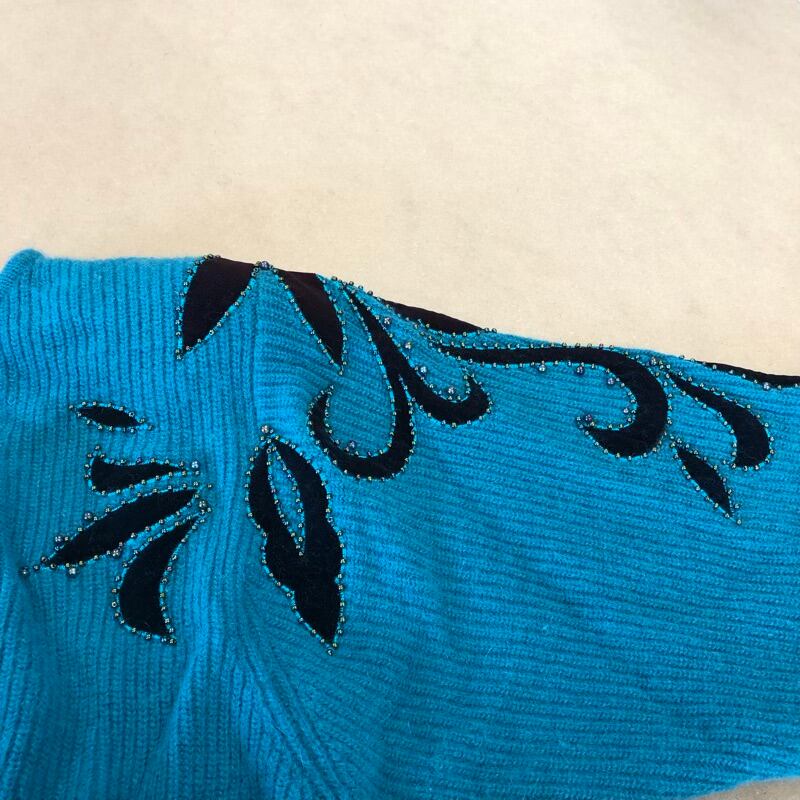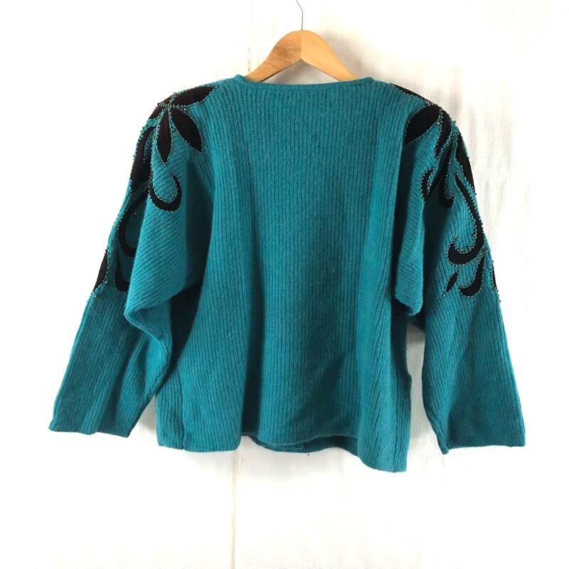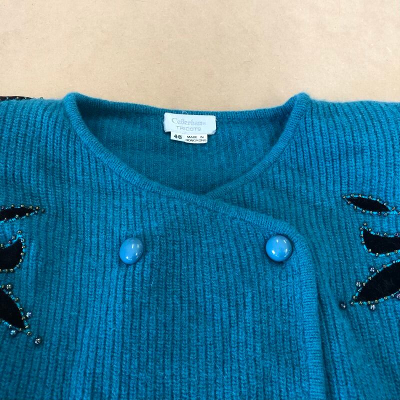 cellerbam TRICOTS ジャケット 柄模様 ビーズ 装飾 リブ 肩パッド 緑系 46サイズ 2025072800059