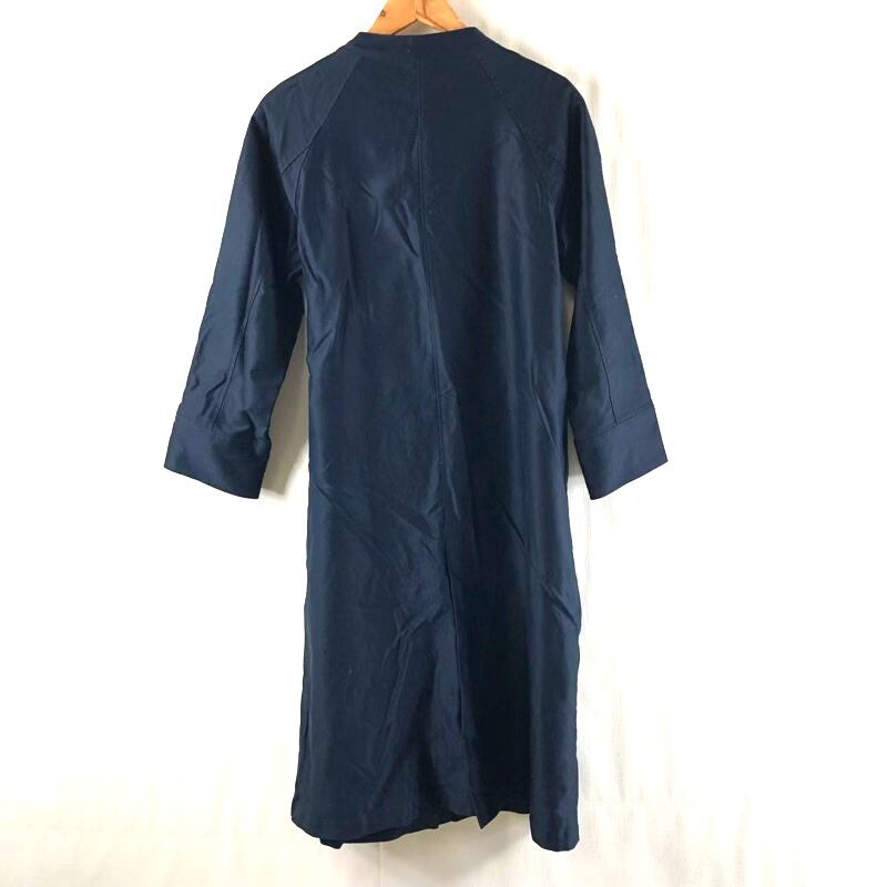 ハリス HARRISS コート ノーカラー ロング丈 ベルトデザイン 日本製 コットン100% 裏地付き 春秋 ネイビー 36サイズ 2025080700051