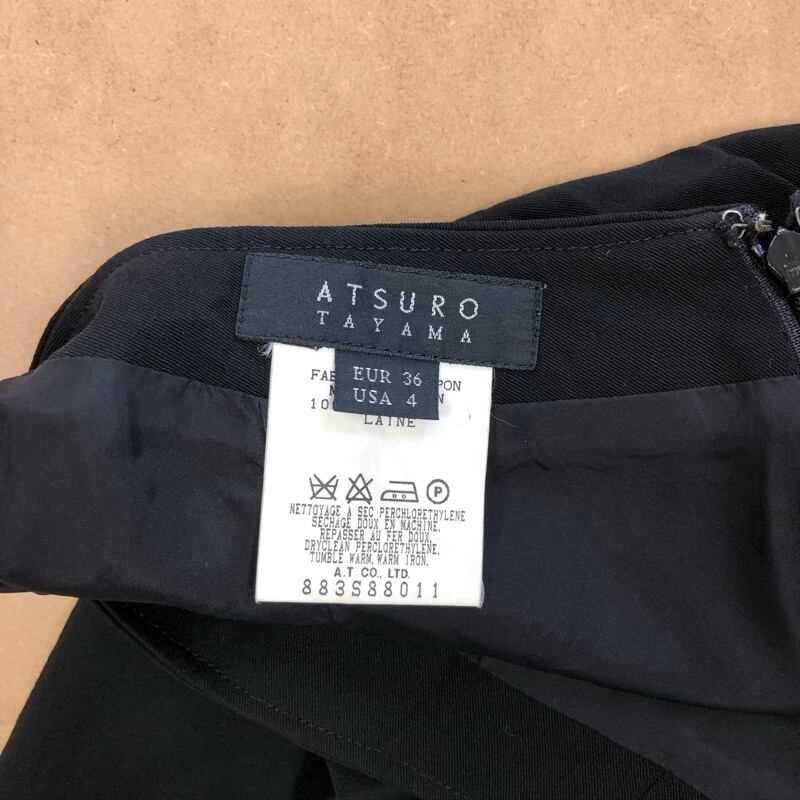 アツロウタヤマ ATSURO TAYAMA スカート ロング丈 ラップ風 日本製 毛100% 裏地付き ブラック 黒 36サイズ 2025080700105