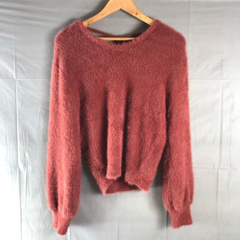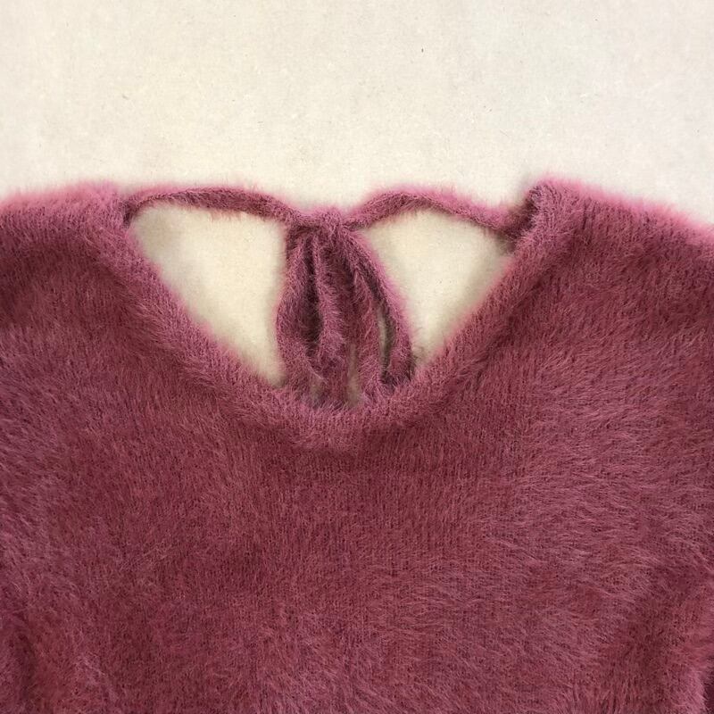 ココディール COCO DEAL ニット Vネック バックオープン リボン モヘア風 赤系 ピンク系 くすみレッド 2サイズ 2025080700211