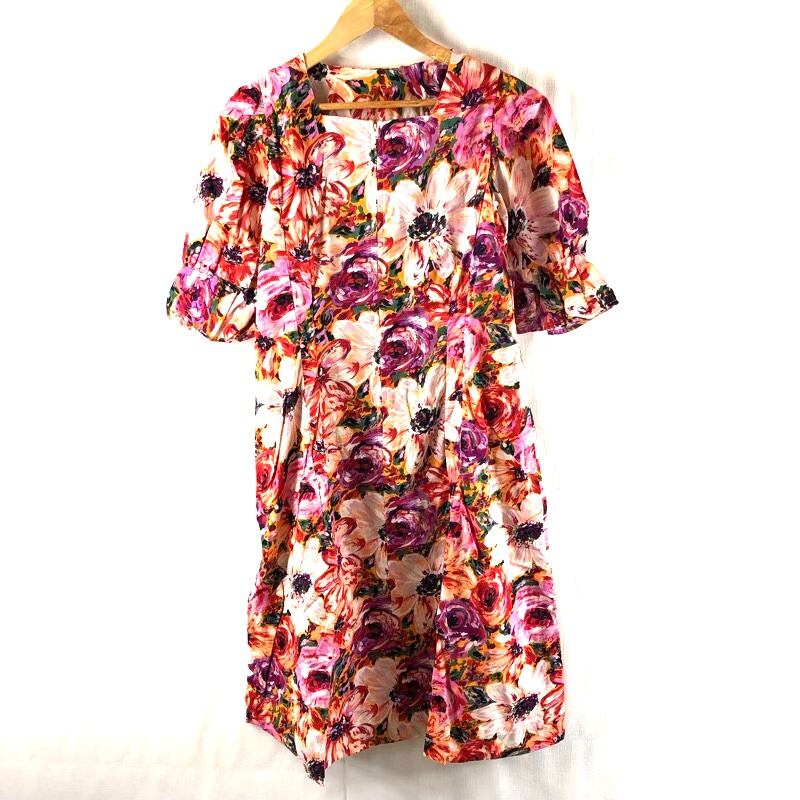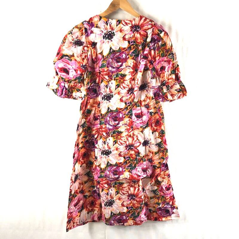 ワンピース ロング 花柄 袖フレア バックファスナー 暖色 赤系 2025080800133