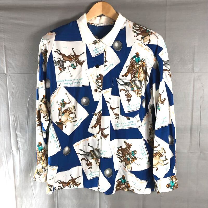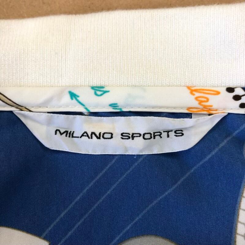 MILANO SPORTS ジャケット 薄手 肩パット 長袖 ボタン 馬 ポロイラスト 胸ポケット 白 青 9ARサイズ 2025080800164