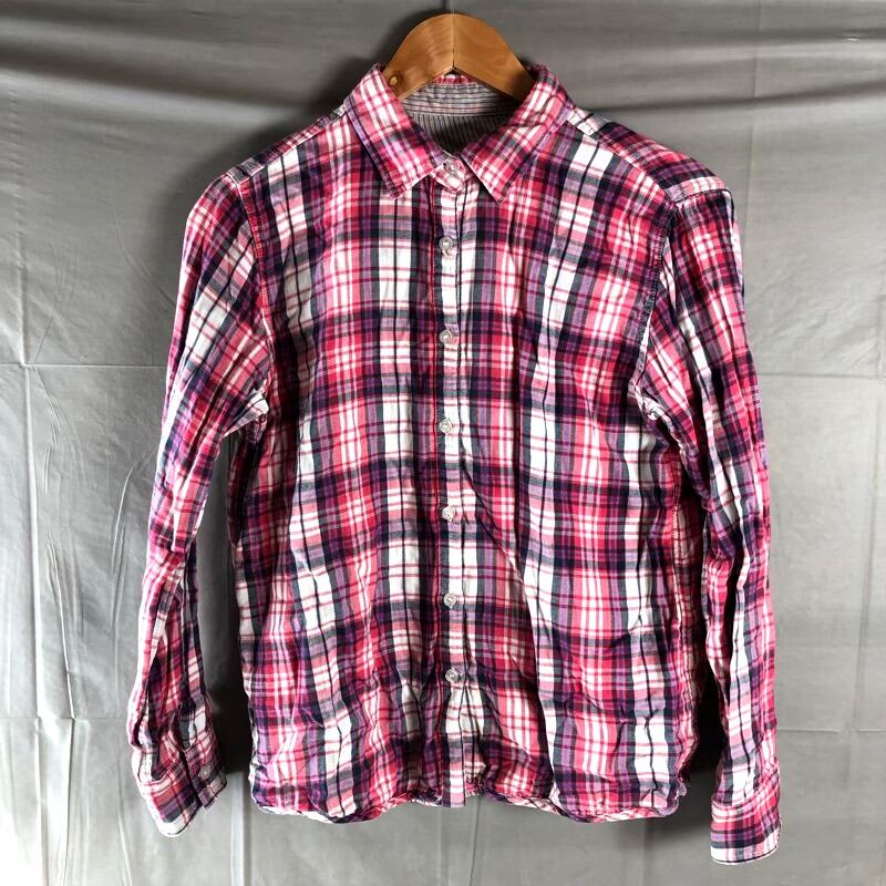 シャツ カジュアルシャツ リバーシブル仕様 チェック ストライプ ボタン 長袖 赤 グレー 白 2025081400189
